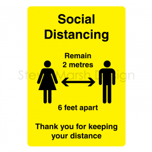 High quality Social Distancing Interior and Exterior signs, manufactured from aluminium composite or foamex.